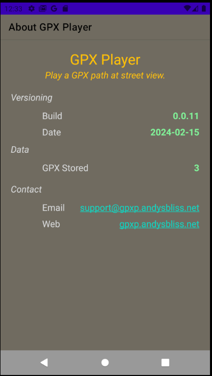 The GPX Player Android App plays your GPX data at street view using Google's StreetView. Load your GPX which you have downloaded or import directly from your favorite Apps such as RideWithGps or Strava.