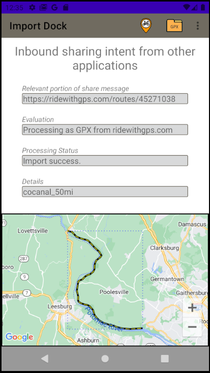 Currently the App supports the ability to Share data from the Strava App and the RideWithGps app links. Using these apps allows one to export a GPX file into the GPX Player app for use.